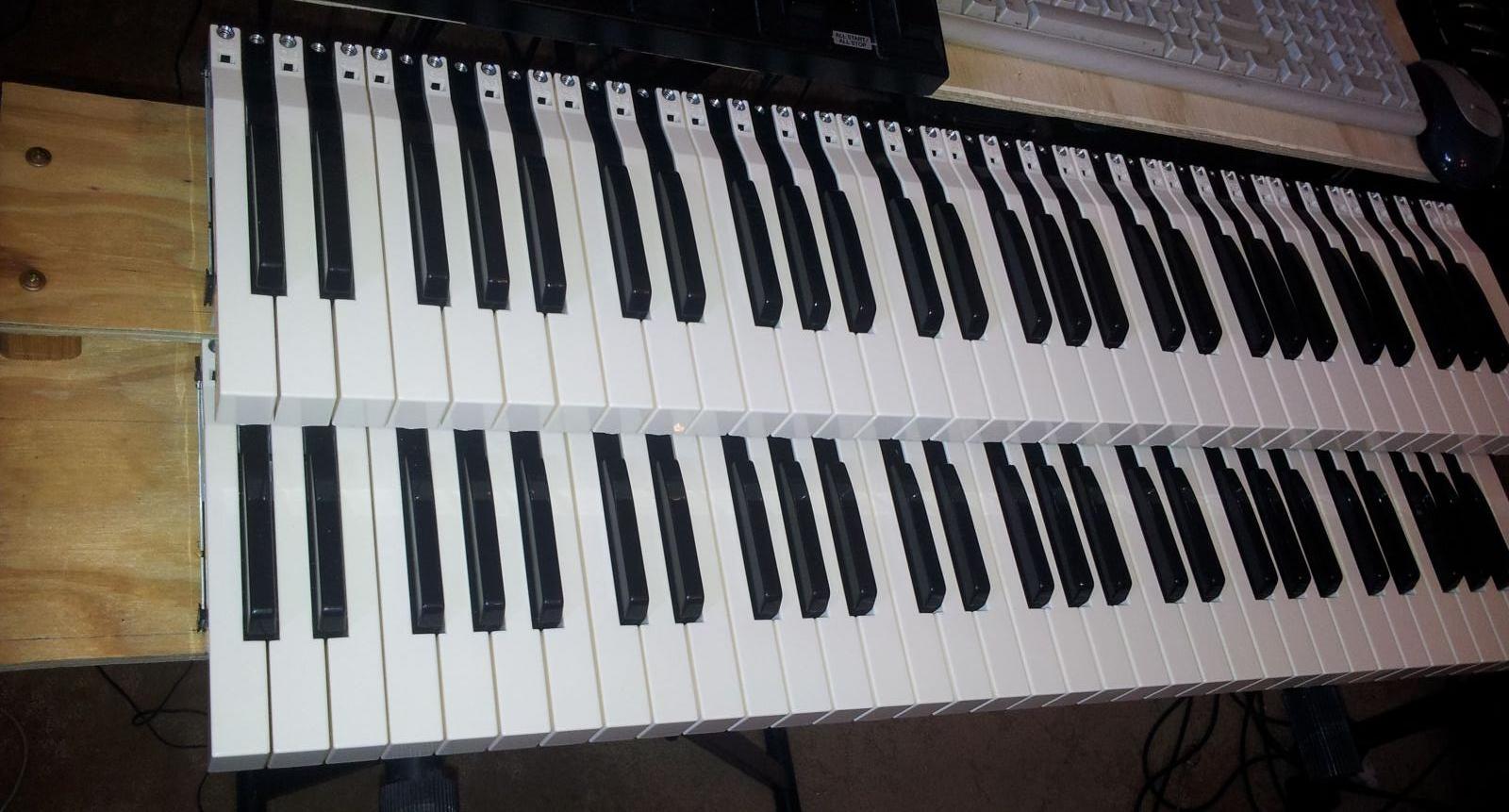 Newly build Midibox KB. 2x61 keys<div>Room on the left for pitchbend and modwheel.</div>