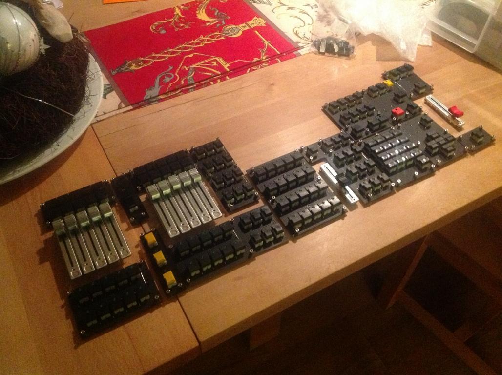 Here i laid out the Buttons+ the Faders on our kitchen Table... Mum was not that Happy :D