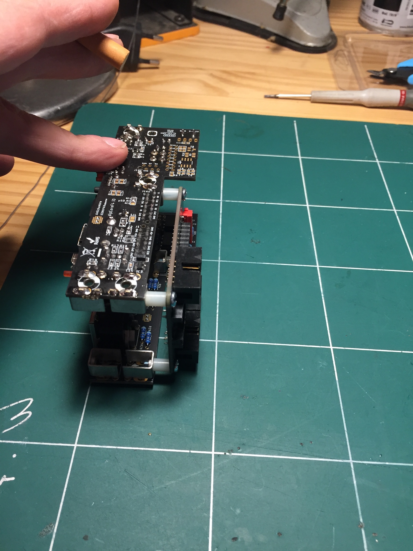 The white spacers are 6mm but can be reduced to 2 or 3mm... The global depth with connectors is less than 50mm!