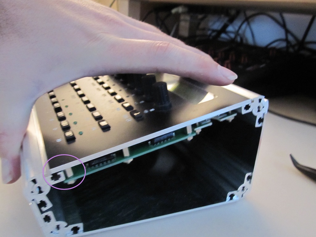 There are 4 spacers of Wilba's MBSEQ Frontpanel which are a bit too much outside so that the case cannot be closed perfectly.