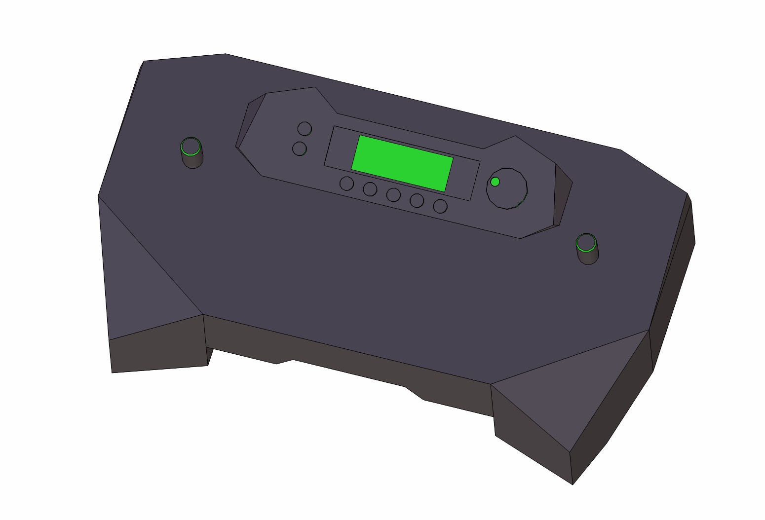 Picture shows a concept drawing. It is pretty much the way it will look like when I'm done. Only thing is buttons and knobs will probably be a bit different. I might use transperant waldorf knobs for the pots / encoder. buttons will probably be tact.switches as seen on MB6582.<br /><br />Case is gonna be painted in matte black color, and in addition some areas with thick black latex coating (as seen on cell phone silicone protectors for example).<br /><br />8 bank sticks is inside the case.<br /><br />Some sideglow fibercable is also finding it's way in there somewhere. Just have to figure out where :).