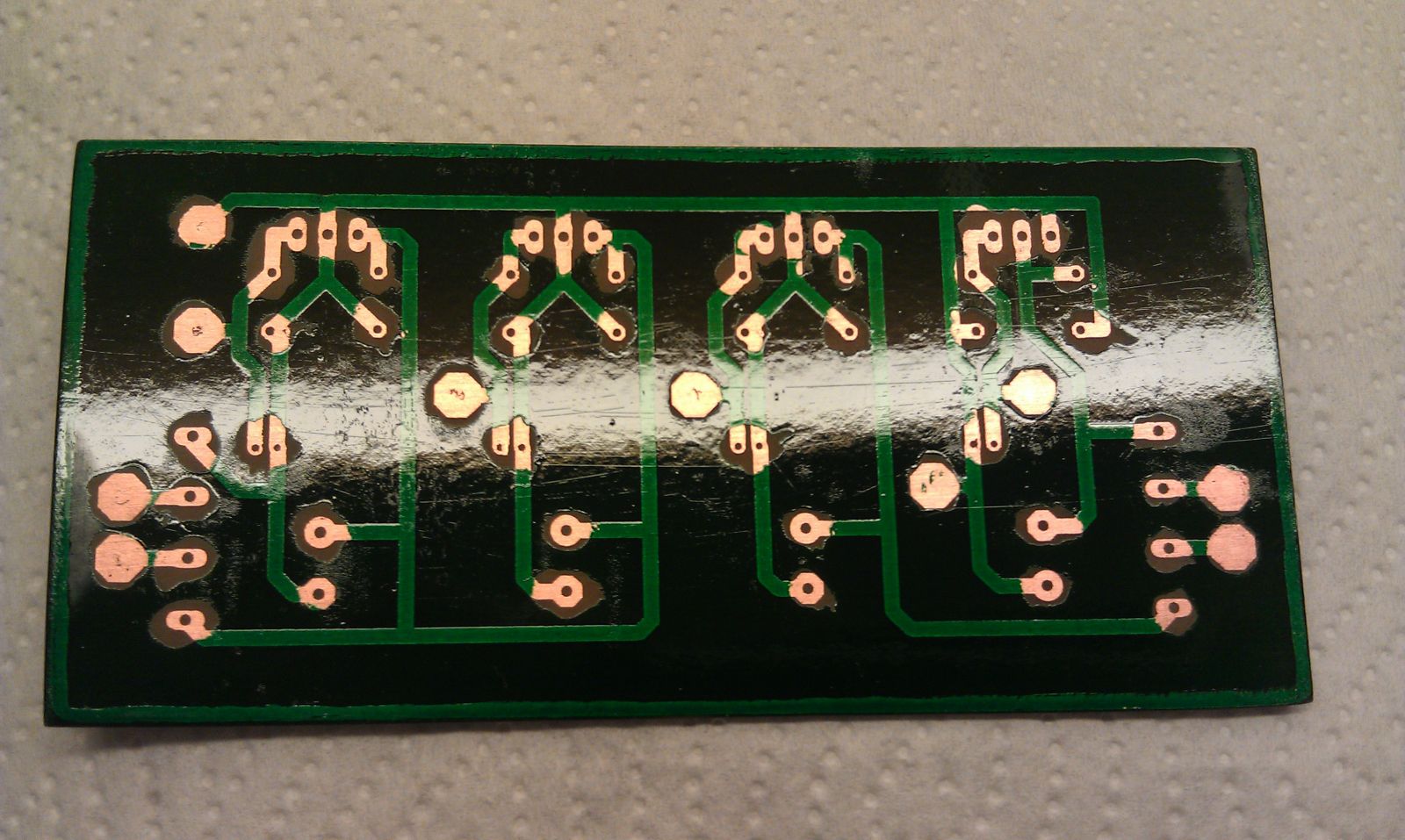 OK. Second of these board I etched. The first one was kinda dirty, soldermask didn't look good etc - in short - it worked very good, but I didn't like it :P...<br /><br />The other picture will explain how I did the soldermask.