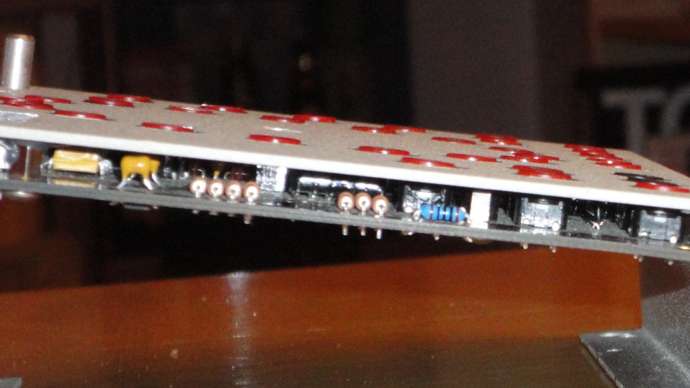 This pic shows the height of the buttons pretty well. It was hard initially to find 5.8 mm spacers, but I'm really happy with the result. And despite an incredibly tough time finding the spacers online, a local surplus electronics shop happens to have thousands in stock!