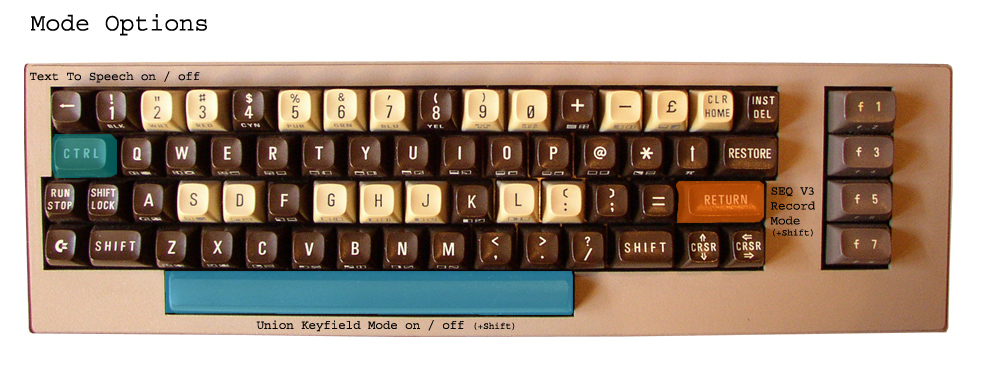 CTRL select Keyboard Mode A..Z Write Letters SPACE Write Pause (Space) RETURN play/send current speech text