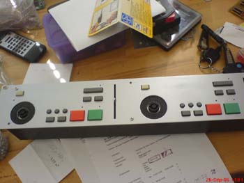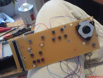 After that I desoldered the PCB to have a template for making new ones. This was done with the help of a desoldering pump. The pushbuttons, the leds and the jog/shuttle wheel have been desoldered.