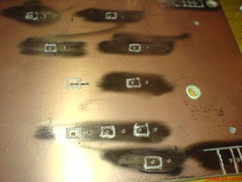 Drilling the new PCB using the old PCB as template. Doing so you achieve a perfect fit of your PCB into the unit. Don't forget to drill the mounting holes too. I am using clamps to keep the two boards aligned during the process