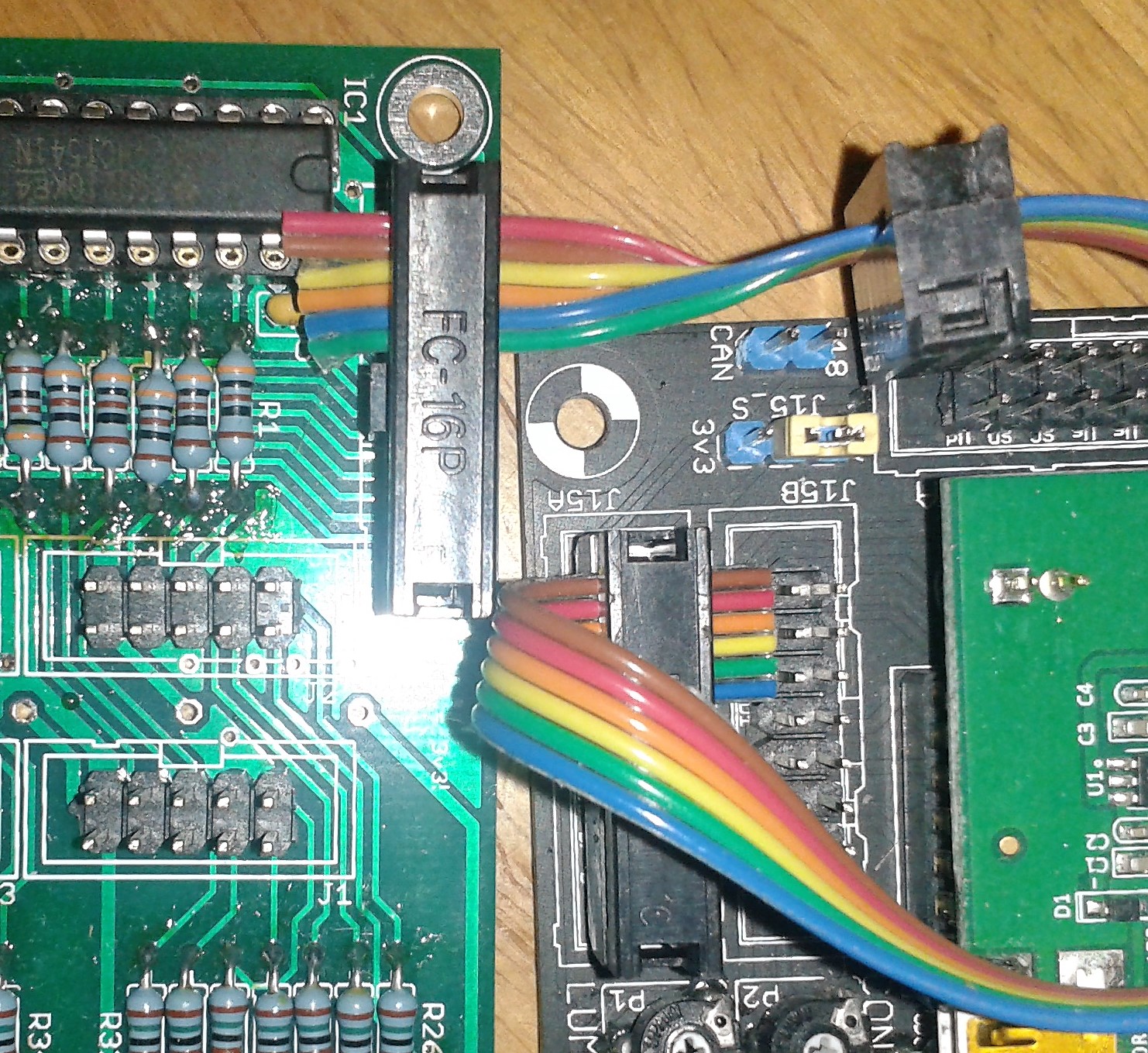 v1.0: first release. Erratum: there is a significant error in that J15 is mirrored. The simplest way to get it working is to swap pairs of the ribbon wires as shown: