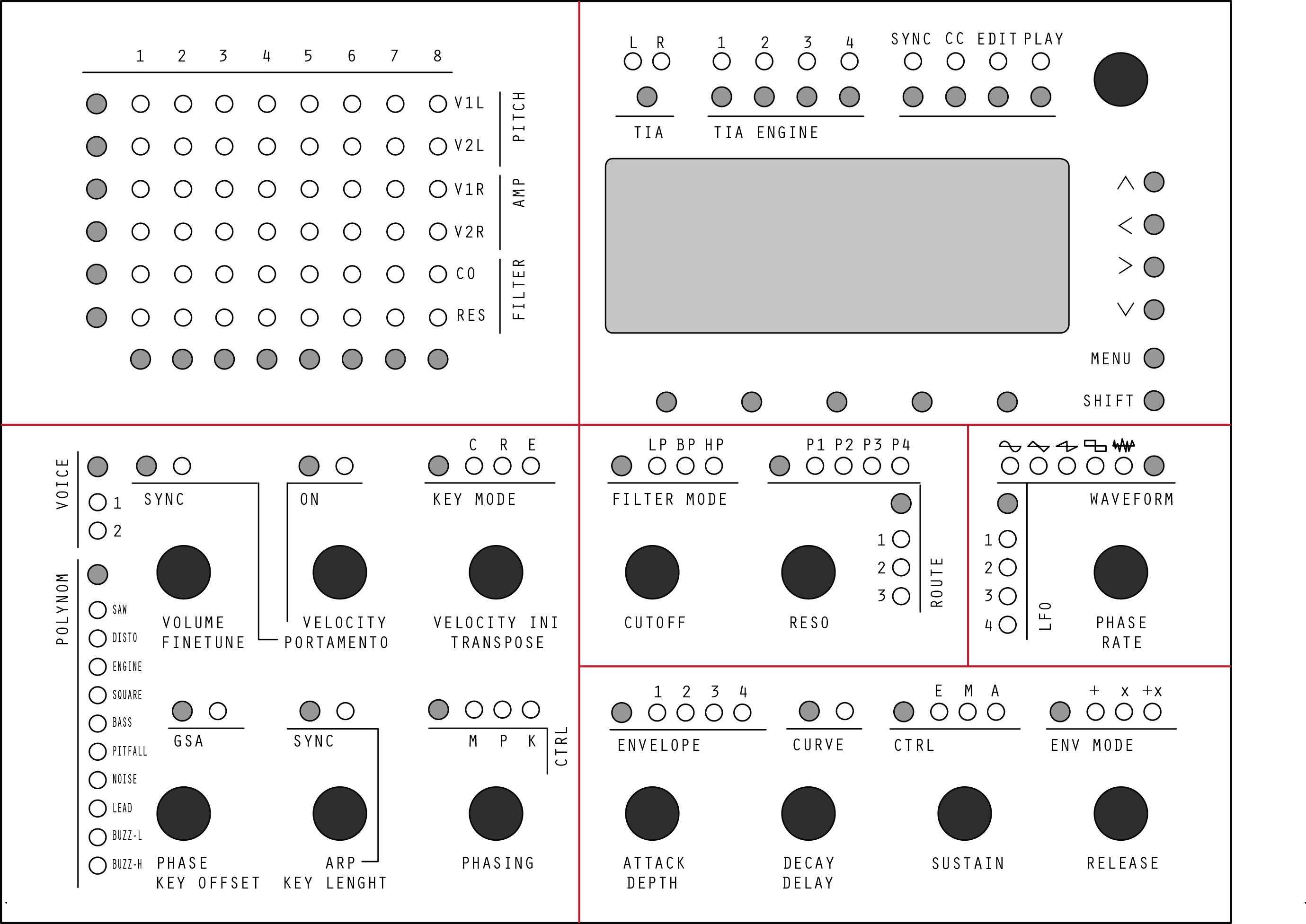 The MB-Stella is a project of a 4xTIA synth in Eurorack Compliant Format with a Step C Control surface based upon