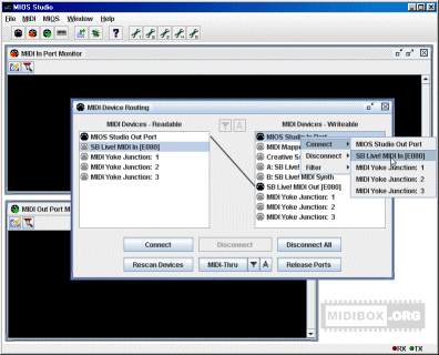 MIDI Device Routing: it allows you to forward and filter MIDI streams to any MIDI port. At the top of the list you will always find the MIOS Studio In and Out port. This is the port to which MIDI data has to be routed when you want to upload code, monitor it, send debug commands, etc…