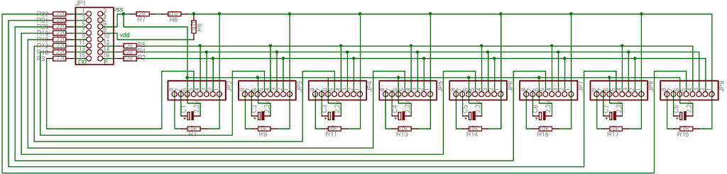 But they are connected via a serial interface with a small number of wires to the MIOS-Core, therefore up to 8 LCDs can be handled by the driver w/o performance loss.