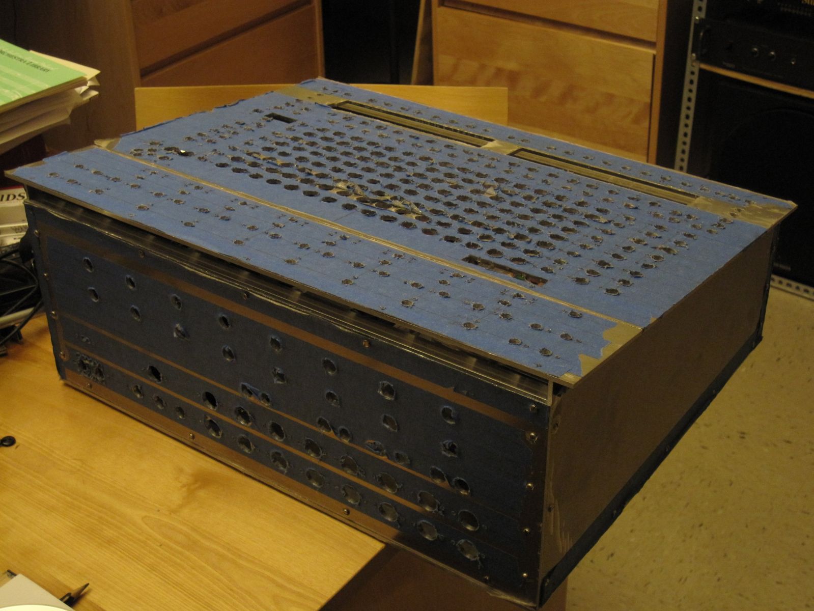 I had wanted to wait to show the case until it was all done, but after a day in the metal shop (back panel and top section of front panel), this photo was too good to pass up. :)