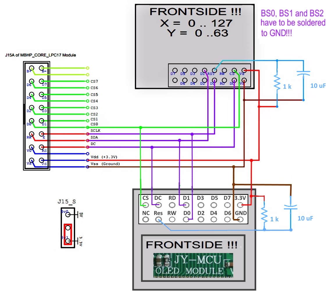 Wiring of a "JY-MCU OLED Module v1.5" SSD1306 display