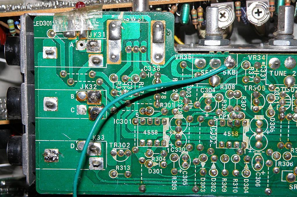 cut the the trace - located behind the switch - right to the led - @the top of the PCB. > this because, the unpluged 6,3er socket is switched to ground - and @ ground - no trigger accours...
