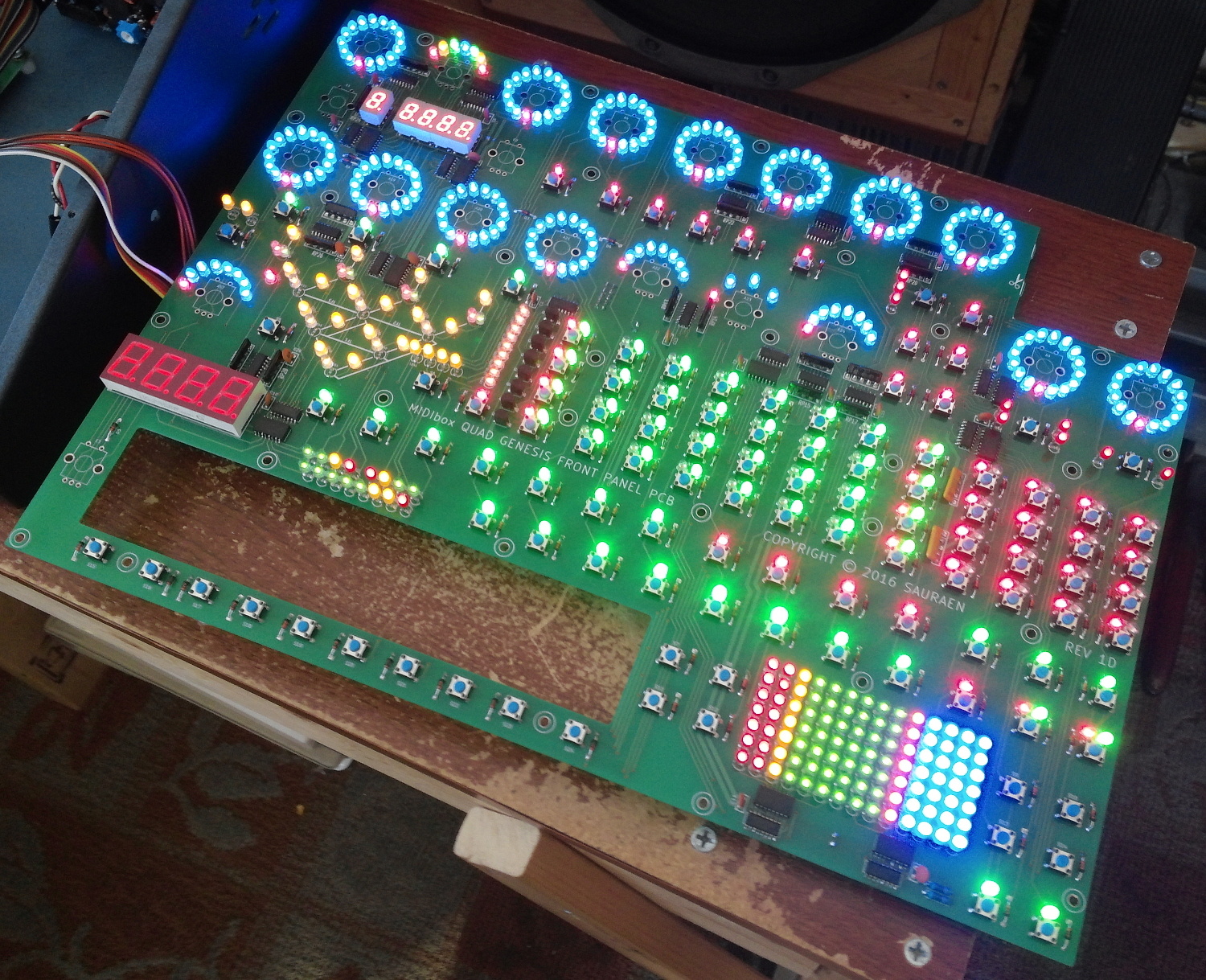 MIDIbox Quad Genesis Front Panel (MBQG_FP) PCB: Most LEDs On