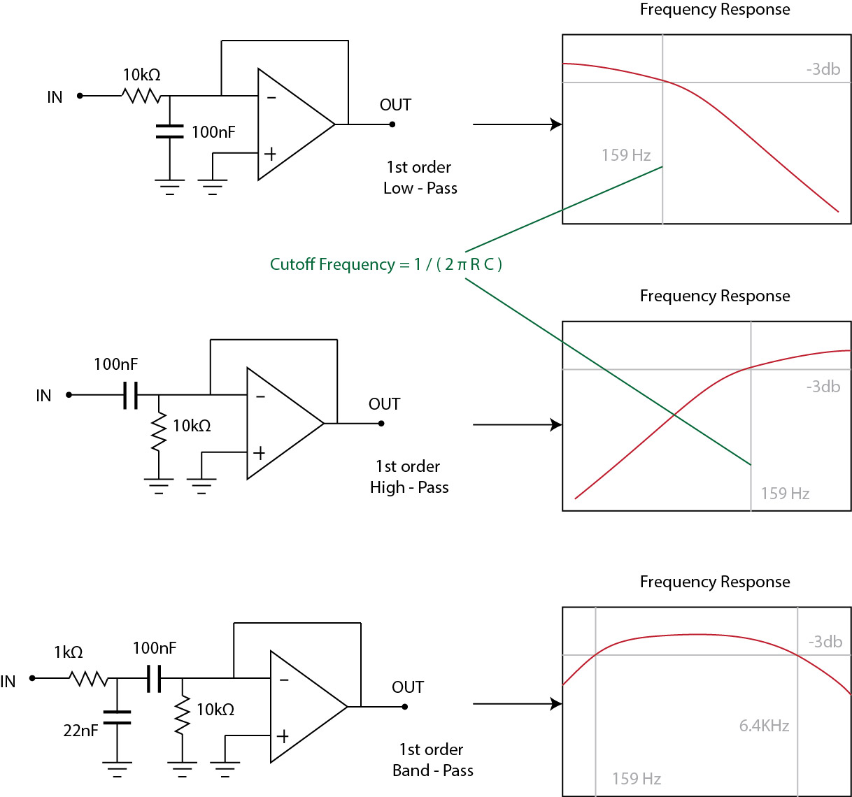 Here are some Basic First-Order filters based upon Operational Amplifier :
