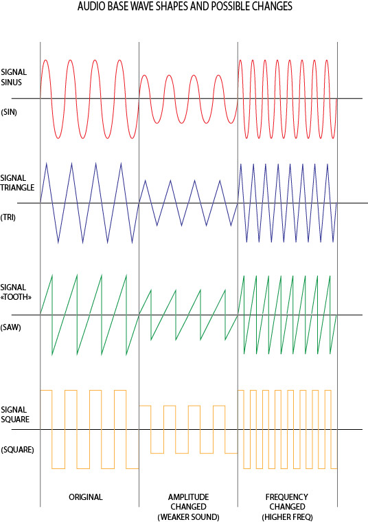 Let's have a look to some base audio waveshapes and how they look when changed in amplitude and in frequency.