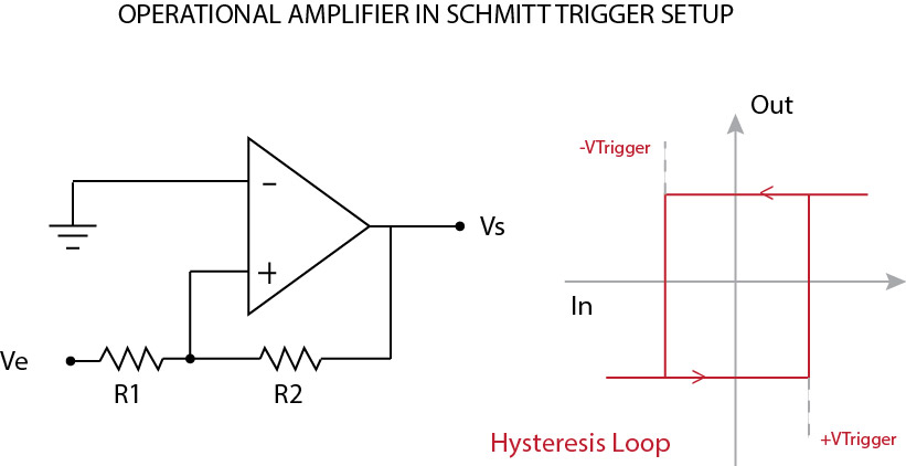 A Schmitt Trigger is an Operational Amplifier Setup “self-regulated”. Depending on the resistor values choosen, you have a fixed +/- Vtrigger.