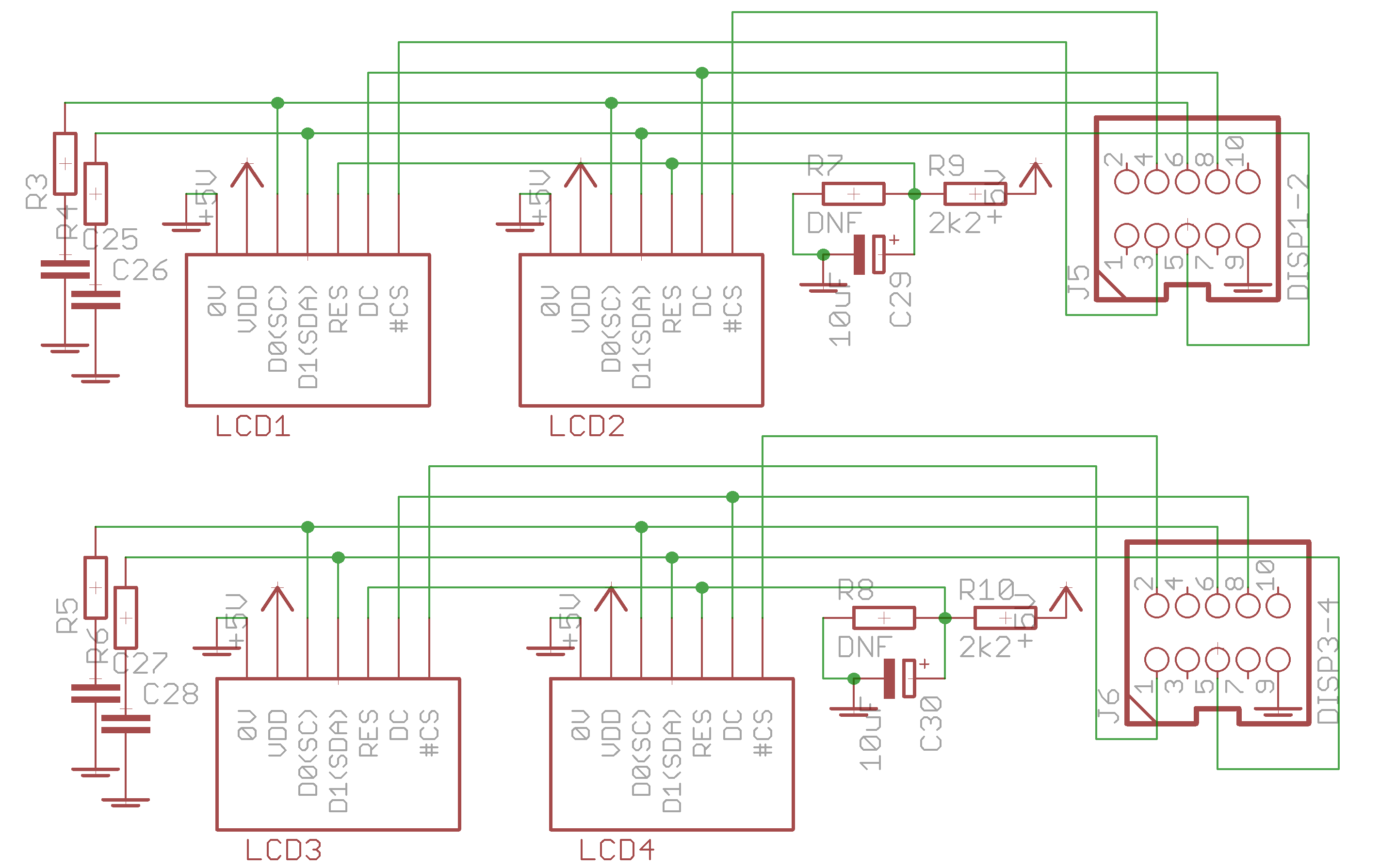 The OLED displays are connected as follows: