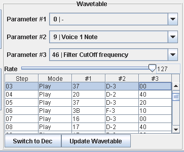Edit the wavetable sequence:
